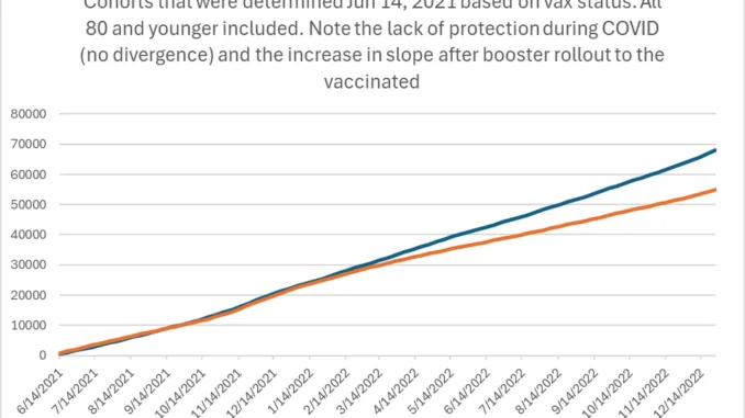 • dass die Sterblichkeitsrate der Geimpften nach den Booster-Impfungen zunahm.