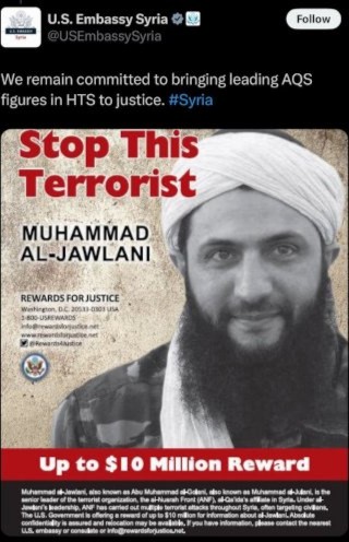 Angeführt wird die HTS von Denn al-Dscholani. Dummerweise ging beim medialen Jubelsturm über den Fall von Assad irgendwie unter, dass sein designierter Nachfolger, Dscholani, immer noch steckbrieflich mit zehn Millionen Dollar Kopfgeld vom FBI gesucht wird.